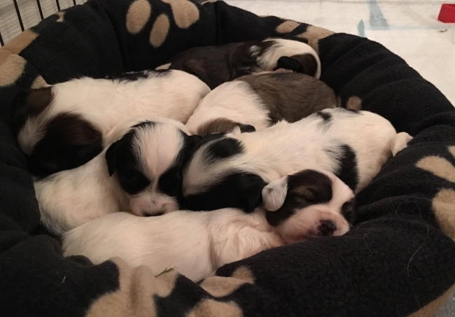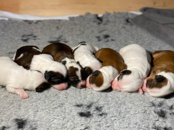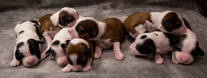 Nu har valparna kommit! För en vecka sedan, den 3:e maj, fick Bianca & Ebbe 7 fina valpar. Som det ser ut nu, så är alla valpar tingade. Skulle ni vara intresserade av en valp från Tibbetell’s, framtida kullar, är ni varmt välkomna att höra av er.