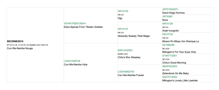 Nu är det dags för vårt charmtroll Cun-Wa-Namba Nouga ” Nouga” att få sin första valpkull, om allt går som planerat. Nouga har varit en riktig stjärna i utställningsringen. Under sina tre år har hon inte mindre än 9 olika titlar. Det viktigaste för oss är dock att avla på en hund som är sund och frisk med ett utmärkt temperament . En tibbe som fungerar med sin familj i vardagen.