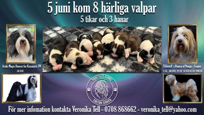 Det är med stor glädje vi kan offentliggöra att Bianca väntar valpar i början av juni. Pappan till dessa valpar är en vacker och trevlig hane vid namn Yogi, som är född i England på kennel Araki men bor nu i Skottland på kennel Karamyst. Bianca bor hos oss och är en härlig glad tibbe som älskar att hoppa på stenar och träna med balansbollar. Hon älskar också att mysa i soffan. Vi tycker denna kombination är extra spännande eftersom det tillför nya blodlinjer till rasen här i Sverige.
