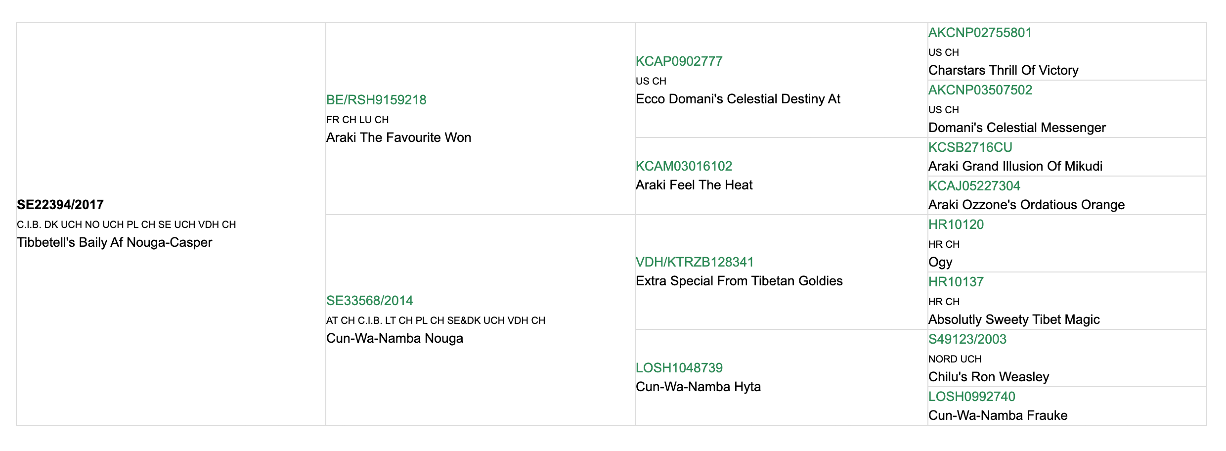 Titlar: CIB, DK UCH, PL CH, SE UCH, VDH CH, NO UCH & SL CH